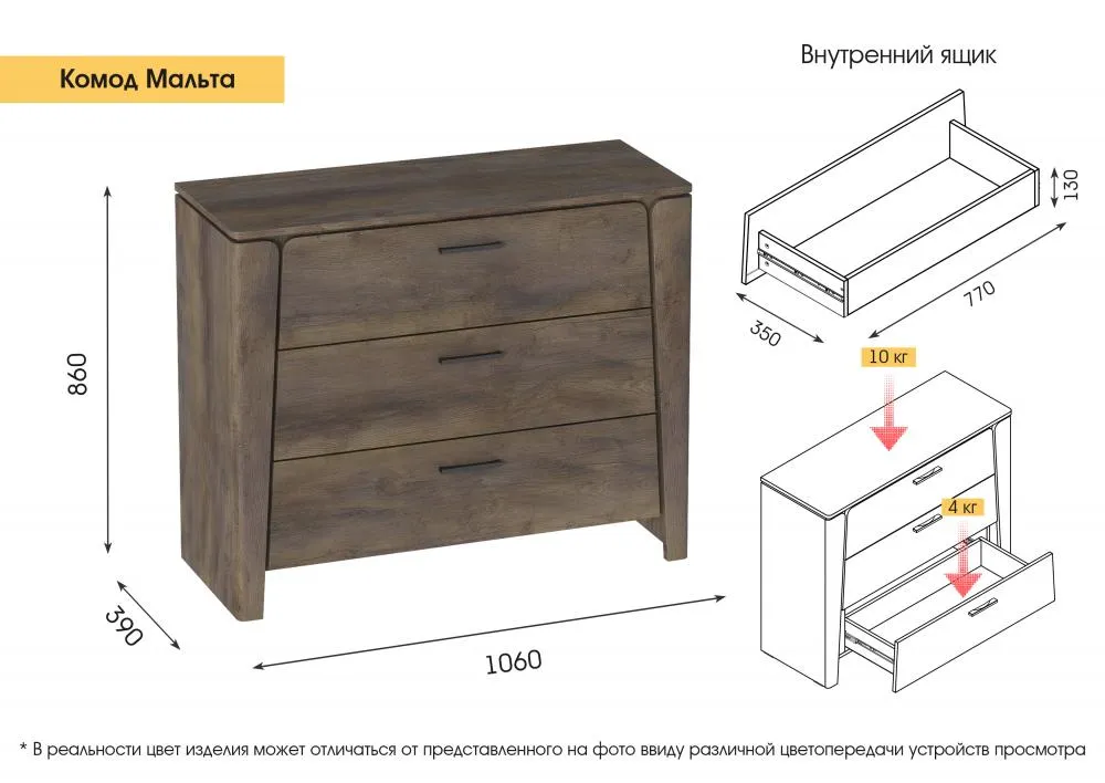 Комод “Мальта” - это стильный и функциональный элемент мебели, который станет прекрасным дополнением к интерьеру Вашей спальни.