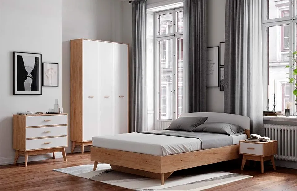 Гарнитур подходит как для просторных, так и для небольших спален, помогая эффективно использовать пространство и создавать уютное и светлое место для отдыха и сна.