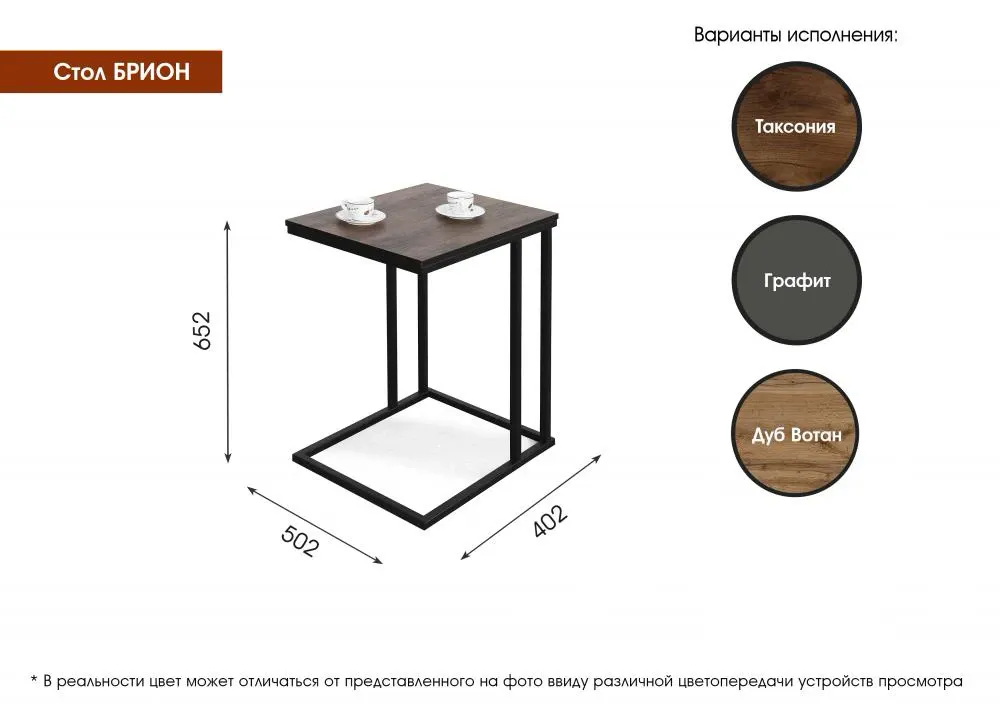 Приставной журнальный столик "Брион" на металлокаркасе выполняет не только декоративную функцию, но и выступает в качестве практичного элемента.
