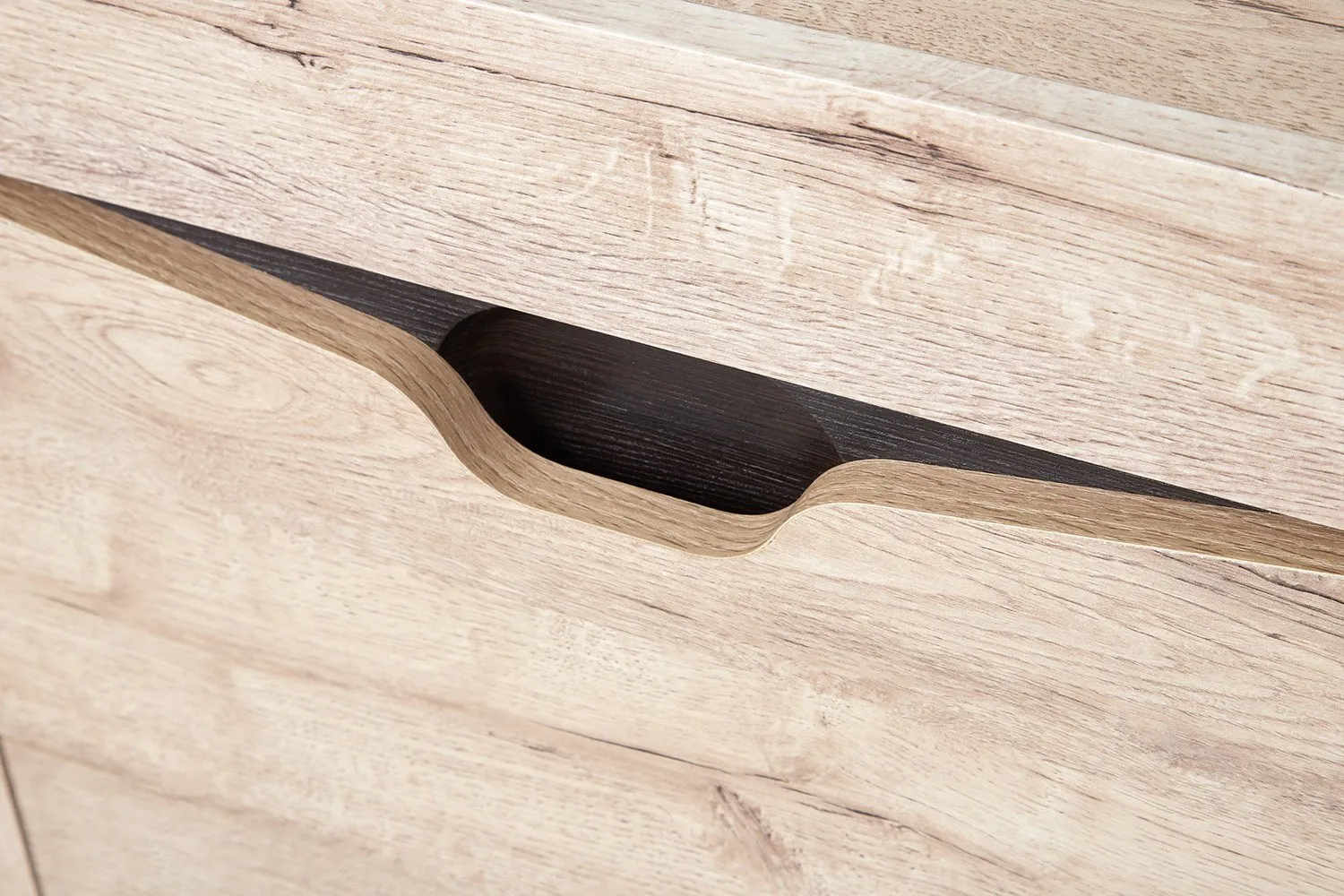 Тумба имеет распашную дверцу, за которой скрывается достаточно места для хранения обуви, а выдвижной ящик идеально подходит для хранения мелких предметов, таких как ключи, перчатки и шапки. Для открывания двери внутри устанавливается система Push to open открывающая ее после нажатия. На открытой полке можно разместить аксессуары или декор, чтобы добавить индивидуальности прихожей.