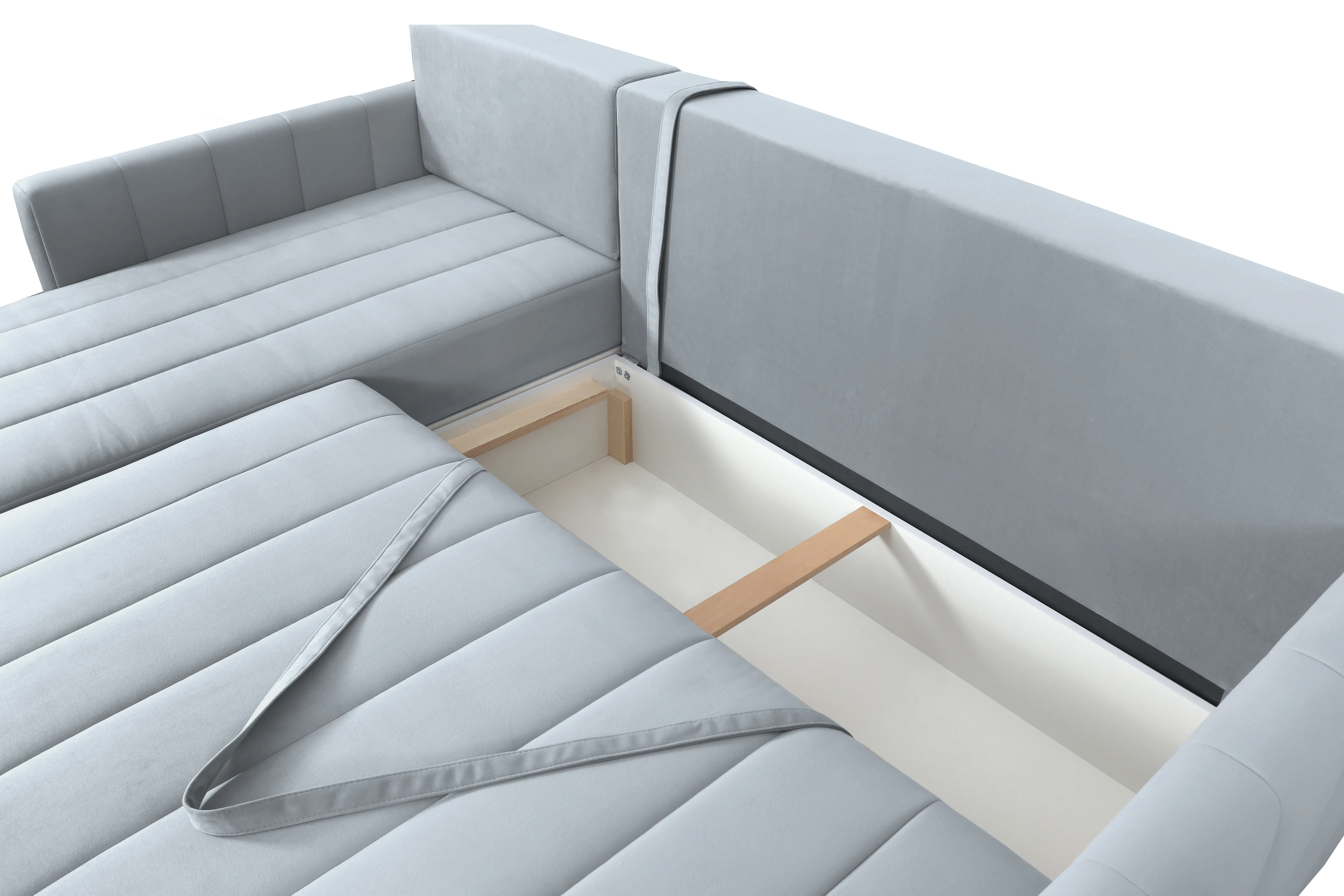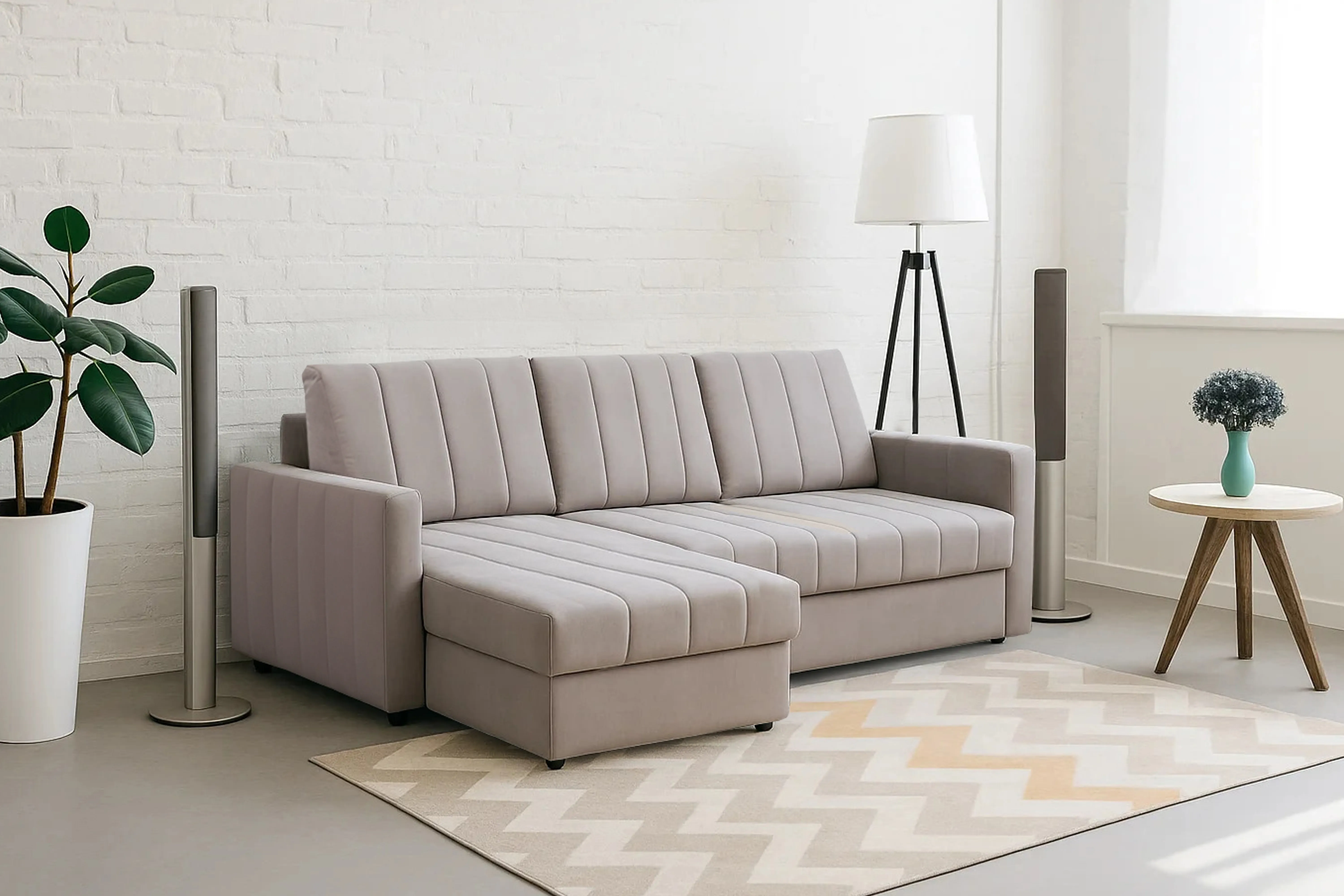 Диван удачно зонирует пространство и дополняет необходимым функционалом. В основании спального места блок независимых пружин для комфортного сна. Вместительный ящик для хранения постельных принадлежностей.